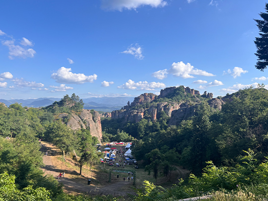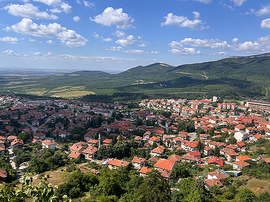 急な階段を何段もあがり、岩を登っていきます。昔は、現在のような鉄製の階段や手すりが設置されていなかったそうです。登り切った頂上からは、面白い形の岩が切り立っている姿や町を眺めることができます。山が延々と続いているバルカン山脈を目の前にし、この山々が黒海まで続いていくのかと海に思いをはせました。この山脈の反対側は、セルビアの国境を越えて続いています。