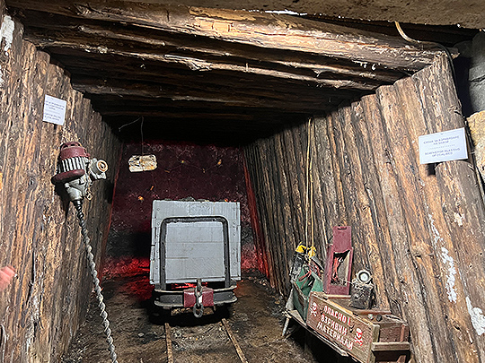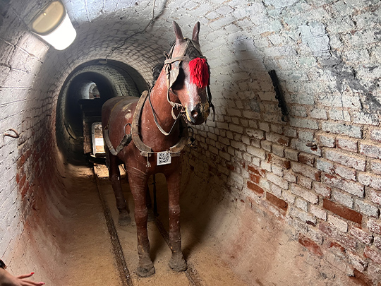 ツアーではガイドさんがつき、当時の様子を詳しく説明してくれました。目に見えない有毒ガスから身を守るために、ランプや鳥などを使って危険を察知していたこと、馬は生まれてから3年間一度も外に出ることなく働かされ、2トンもある荷物を引いていたことなどを聞きました。また採掘中の坑内はとても暑く水分補給が必要で、炭鉱夫が一日に飲む水は6リットルもあったそうです。大変厳しい労働環境でしたが、給料が良かったために働きたい人が大勢集まり、街が形成されたとのことでした。