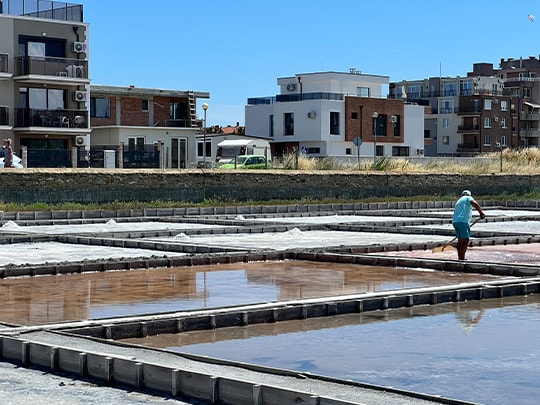 ポモリエの町にあるポモリエ湖の周辺は塩泉や干潟が多く、古代から塩の生産地として栄えてきました。紀元前5世紀にはすでに塩田が存在していたといいます。町は昔、「アンヒアロス(Anchialos)」と呼ばれ、古代ギリシア語で「海や塩の近く」という意味があります。現在の名前「ポモリエ」も、ブルガリア語で同じ意味を持っています。