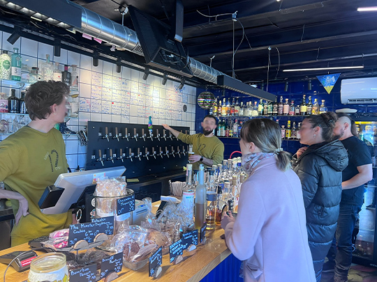 KANAALの店内。壁に並んでいるビールサーバーには、ブルガリアだけでなく海外のビールも。
